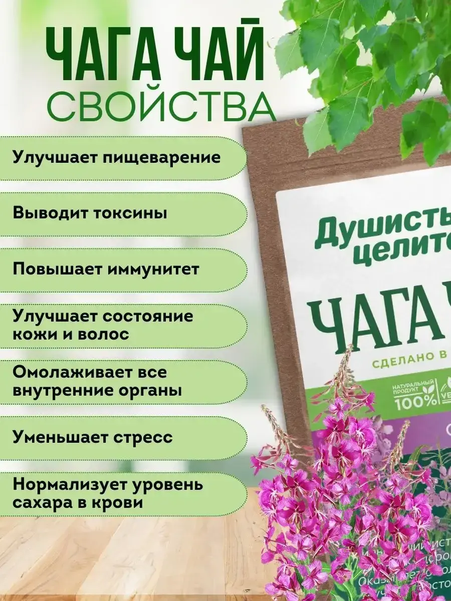 Погрузитесь в мир природного здоровья с травяным чаем из березовой чаги и иван-чая. Этот натуральный продукт, созданный из древесного гриба, станет вашим верным спутником в поддержании здоровья и хорошего самочувствия. Чай чага не содержит кофеина, что делает его идеальным выбором для тех, кто ищет альтернативу традиционным чаям. Он эффективно укрепляет иммунитет и способствует улучшению общего состояния организма. Благодаря своим очищающим свойствам чага помогает бороться с отеками и поддерживает работу пищеварительной системы. Этот травяной напиток станет отличным дополнением к вашей диете, особенно если вы стремитесь к похудению. Чага обладает детокс-эффектом, который тонизирует и придает жизненные силы. Прекрасный выбор для тех, кто хочет улучшить качество сна и расслабиться после напряженного дня. Этот чай станет оригинальным подарком для близких и друзей. Подарочный набор с чагой порадует как женщин, так и мужчин на любой праздник. Удивите своих близких на День рождения, 8 марта или 23 февраля. Для заваривания используйте 1 чайную ложку порошка на 200 мл кипятка и дайте настояться 15–20 минут. Храните в сухом месте, чтобы сохранить аромат и полезные свойства. Наслаждайтесь каждой чашкой этого полезного напитка, который станет частью вашей коллекции здоровых чаев.