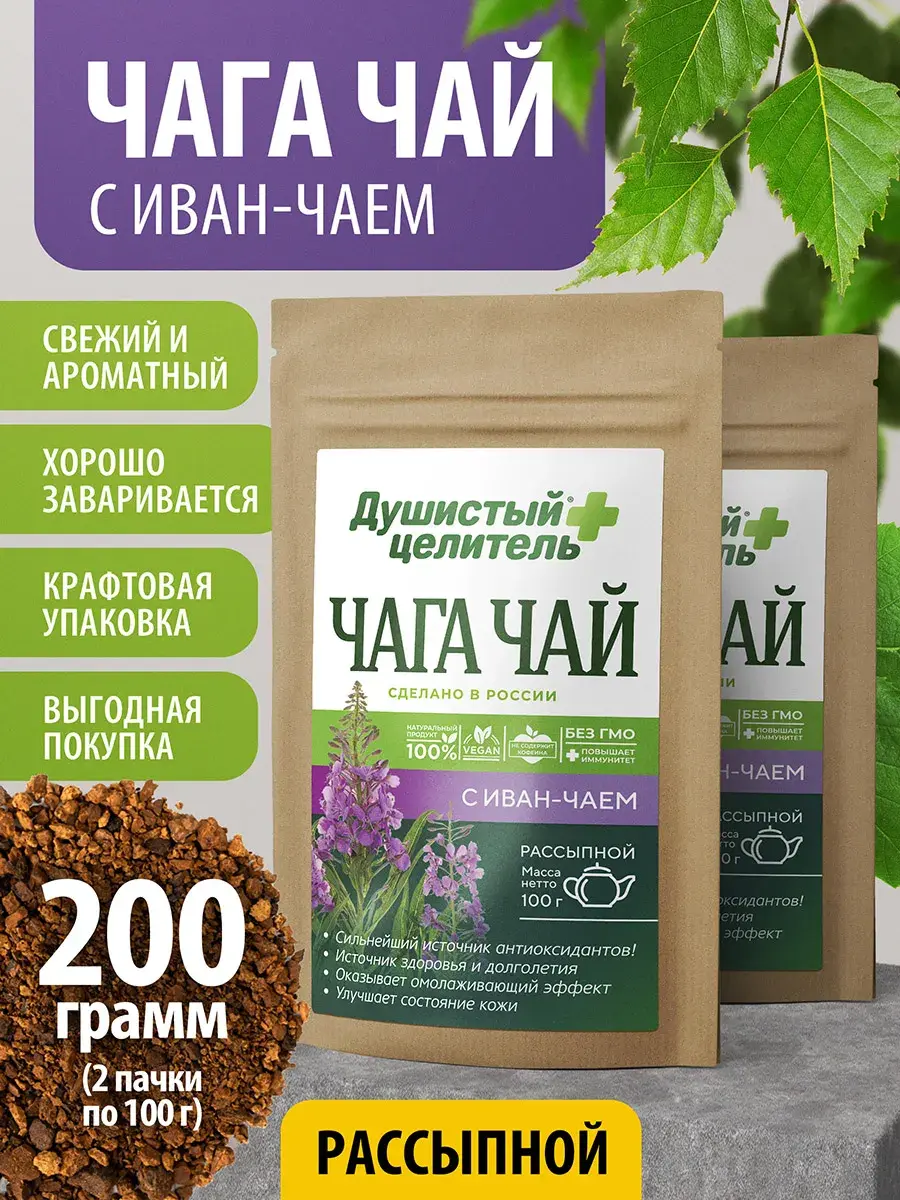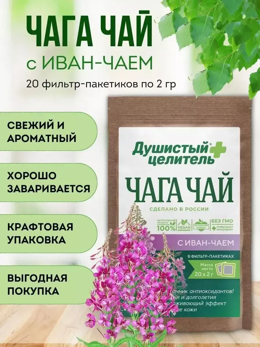 Погрузитесь в мир природного здоровья с травяным чаем из березовой чаги и иван-чая. Этот натуральный продукт, созданный из древесного гриба, станет вашим верным спутником в поддержании здоровья и хорошего самочувствия. Чай чага не содержит кофеина, что делает его идеальным выбором для тех, кто ищет альтернативу традиционным чаям. Он эффективно укрепляет иммунитет и способствует улучшению общего состояния организма. Благодаря своим очищающим свойствам чага помогает бороться с отеками и поддерживает работу пищеварительной системы. Этот травяной напиток станет отличным дополнением к вашей диете, особенно если вы стремитесь к похудению. Чага обладает детокс-эффектом, который тонизирует и придает жизненные силы. Прекрасный выбор для тех, кто хочет улучшить качество сна и расслабиться после напряженного дня. Этот чай станет оригинальным подарком для близких и друзей. Подарочный набор с чагой порадует как женщин, так и мужчин на любой праздник. Удивите своих близких на День рождения, 8 марта или 23 февраля. Для заваривания используйте 1 чайную ложку порошка на 200 мл кипятка и дайте настояться 15–20 минут. Храните в сухом месте, чтобы сохранить аромат и полезные свойства. Наслаждайтесь каждой чашкой этого полезного напитка, который станет частью вашей коллекции здоровых чаев.