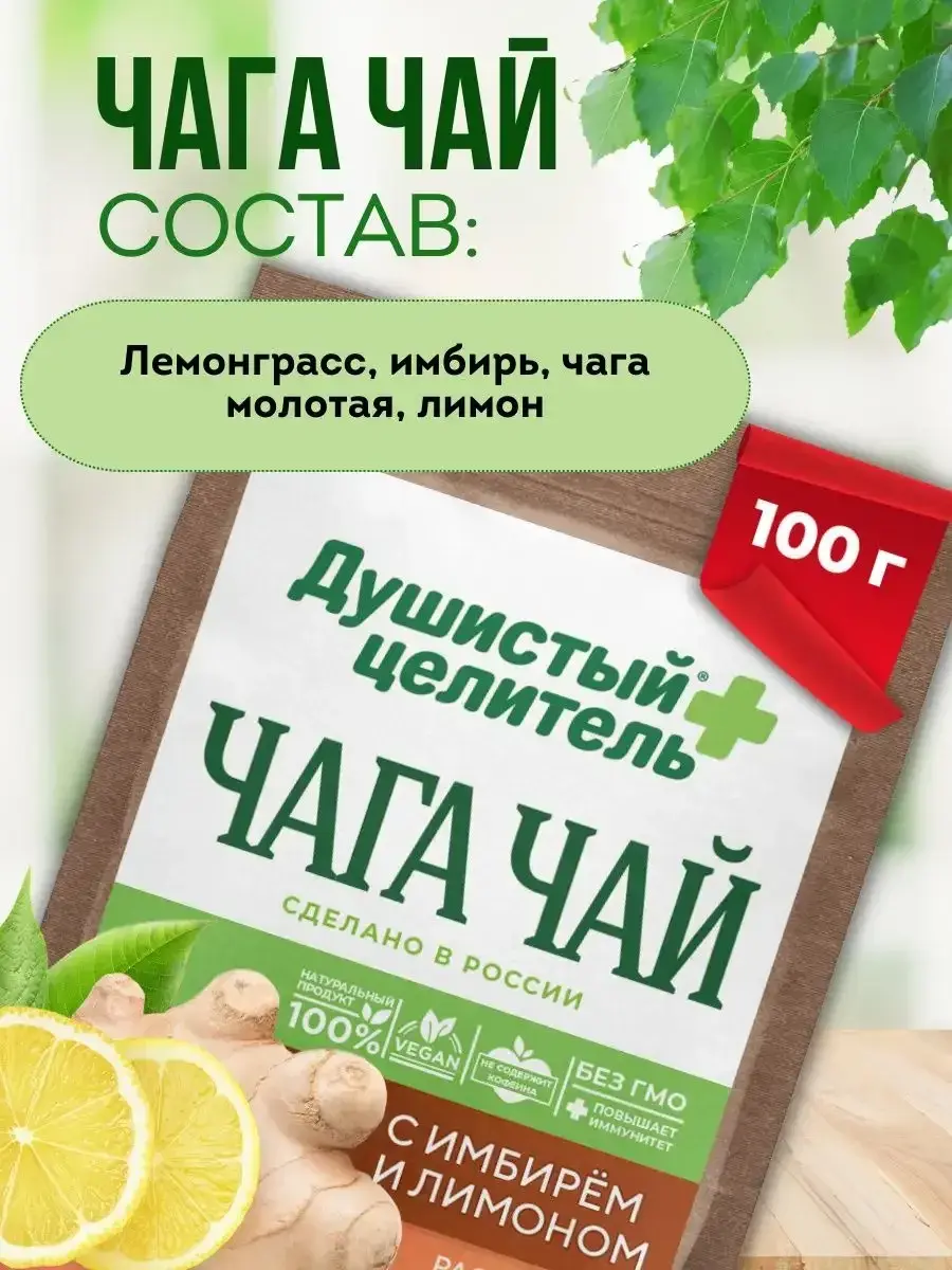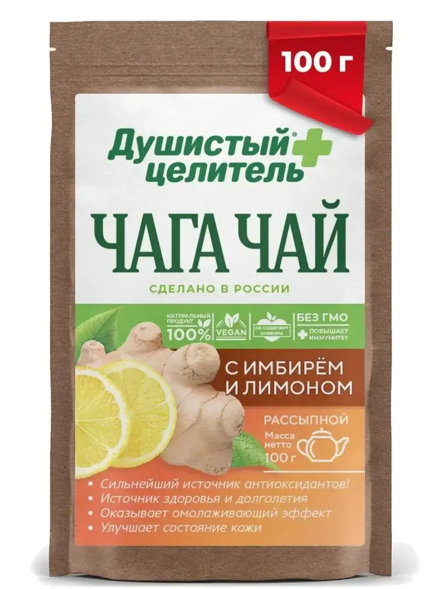 Травяной чага чай с лимоном и имбирем 100 грамм